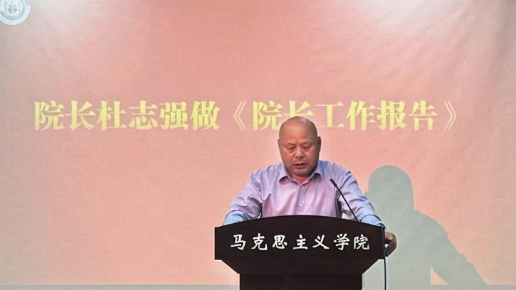 院长杜志强作院长工作报告。报告分为三个部分:第一部分围绕二届四次教职工大会暨工会会员大会的提案征集及办理情况进行结果反馈,主要涉及教学、科研、民生、财务制度、青年教师发展等方面的问题。第二部分从党建引领更为坚实、学院发展更为聚焦两方面全面回顾了2024年党建工作、教学工作、学科科研、人才培养、社会服务等方面的做法和所取得的成绩。第三部分分析了目前的形势和任务,从坚持党建引领、提升教学能力、聚焦科研特色、深化融合育人、优化师资队伍、夯实文化阵地等六个方面对2025年的整体工作进行了部署。
