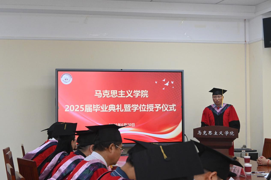 2025届硕士研究生毕业典礼暨学位授予仪式,学院领导班子及毕业生导师出席会议,2025届全体毕业生参加,会议由院党委副书记徐涤寒主持。