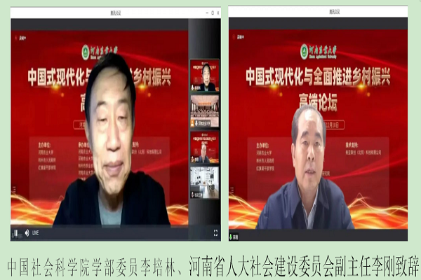 2022年12月10日,由河南农业大学、林州市人民政府、红旗渠干部学院共同主办,河南农业大学文法学院、河南农业大学社会服务处、林州市农业农村局、河南农业大学乡村振兴研究院、红旗渠乡村治理研究院、河南农业大学社会治理创新研究中心、河南现代农业研究院乡村治理研究中心、河南农业大学科学发展与农民权利研究中心、河南农业大学-大河网应急管理研究院联合承办的“中国式现代化与全面推进乡村振兴高端论坛”在红旗渠干部学院召开。中国社会科学院学部委员、全国人大常委、全国人大社会建设委员会副主任委员李培林,国家乡村振兴局中国扶贫发展中心主任黄承伟,中国社会工作学会会长、北京大学社会学系教授王思斌等12名专家参加论坛;河南省人大常委会委员、河南省人大社会建设委员会副主任委员李刚,河南省政协人口资源环境委员会副主任委员谷建全,河南省社会科学院院长王承哲,河南省委农办副主任、河南省农业农村厅副厅长刘保仓,安阳市人大常委会副主任王建国,林州市委书记王宝玉,林州市市长孙建铎,红旗渠干部学院常务副院长刘建勇等15位领导出席开幕式;校党委书记魏蒙关、乡村振兴研究院副院长张锟、社会服务处处长赵翠萍、党委办公室副主任郭治鹏、学院党委书记牛娟、院长王晓勇、副院长李伟以及学院师生代表参加开幕式。开幕式由副校长刘晓永主持。