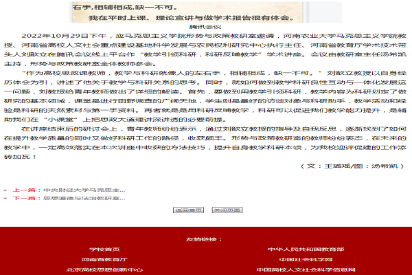 (孟瑶 刘梦迪 文,李秋潭 图 )近日,郑州工商学院永利娱乐 对我中心执行主任刘歆立教授应邀做学术报告作为学院新闻进行了报道,(链接:形势与政策教研室邀请刘歆立老师开展学术讲座_学院新闻_郑州工商学院永利娱乐 //szb.ztbu.edu.cn/2022_10/30_00/content-32296.html)。