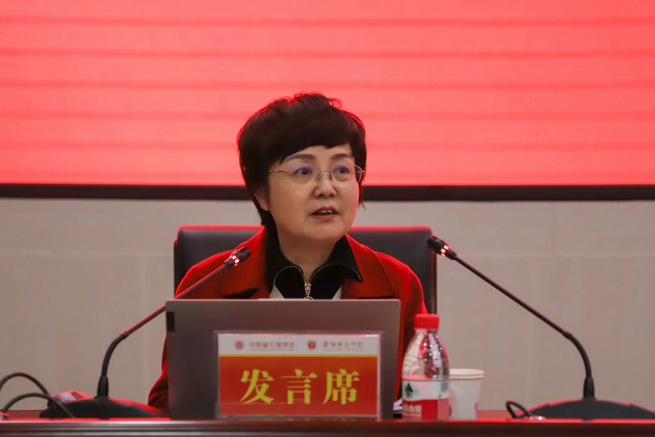 在专题交流发言阶段,王蕊老师以《红旗渠精神融入高校思政课研究》为题,从红旗渠歌曲的角度分析其中蕴含的红旗渠精神。她指出红旗渠始建至今,全国各地的音乐工作者创作了很多不同类型的音乐作品来歌颂红旗渠。例如红旗渠竣工后,1971年中央新闻电影制片厂发行纪录影片《红旗渠》的主题曲《定叫山河换新装》,1972年《红旗渠凯歌震天响》,1975年《歌唱红旗渠》,2013年《红旗渠赞歌》,2018年《天河》,2021年《中国有条红旗渠》等。特别是2023年7月1日,周深发行的歌曲《如许》,从内容到旋律都给人以积极向上的力量,使更多青年人能够从红旗渠精神中汲取力量、接续奋斗。
